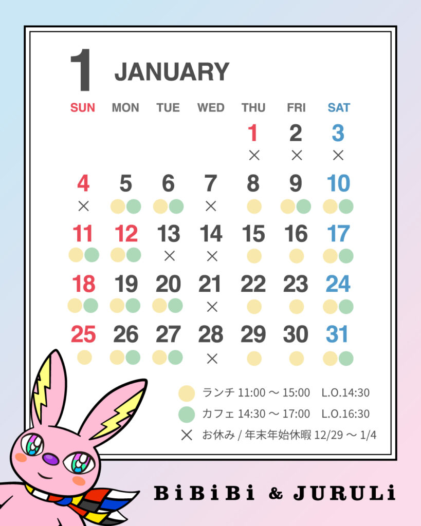 2026年1月の営業スケジュール
