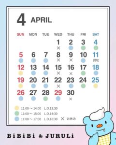 4月の営業スケジュールをご案内いたします。ご予約状況により、営業時間が日によって異なります。スケジュールをご確認の上ご来店ください。4月18日より企画展「富山新聞復刊80年記念 谷川俊太郎 絵本★百貨展」がスタートします!展覧会もお食事も、美術館での時間を満喫してくださいね。皆様のご来店を心よりお待ちしております。